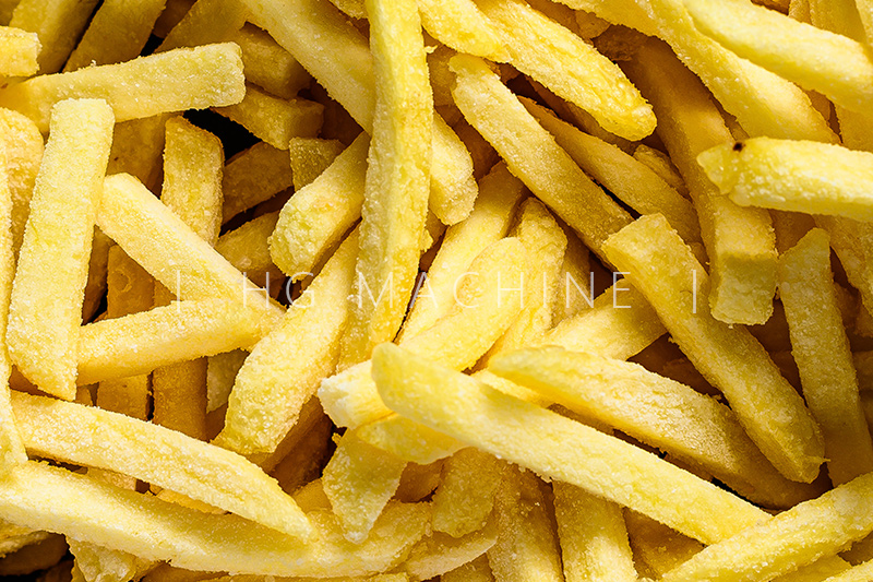 Partes principales: elevador, máquina desarenadora, lavadora, tolva de pesaje, peladora a vapor, tolva de recolección y alimentación, separador por cepillos, transportador de inspección, máquina cortadora, máquina de escaldado, segunda máquina de escaldado, filtro vibratorio de agua, máquina de presecado, freidora, tanque de aceite, desengrasadora (tipo vibratorio), preenfriador, unidad de congelación.