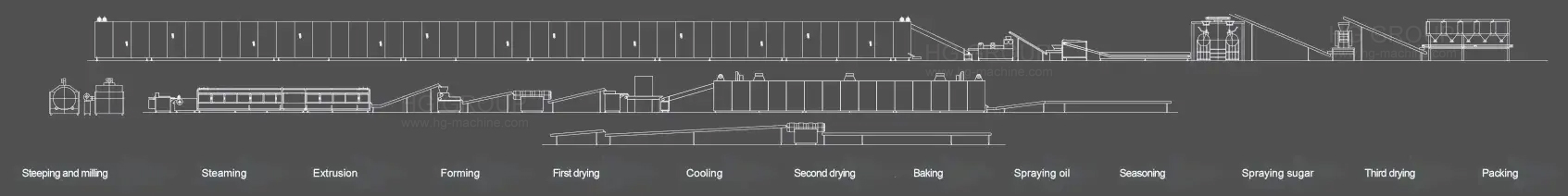 Esta línea de producción totalmente automática de galletas de arroz frito es un conjunto completo de equipos especialmente diseñados por nuestra fábrica, que absorben las principales ventajas de maquinaria similar de Japón y Taiwán manteniendo al mismo tiempo los principios de procesamiento clásicos. Combina plenamente las características de las materias primas chinas y las necesidades de los escenarios de producción. Como fabricante profesional de equipos nacionales para refrigerios, este equipo combina las principales ventajas de alta eficiencia y estabilidad, alto rendimiento y baja inversión. Reduce el umbral para que las empresas inicien la producción y al mismo tiempo garantiza la continuidad de la producción, ayudándolas a producir de manera eficiente productos de galletas de arroz frito que satisfagan la demanda del mercado.